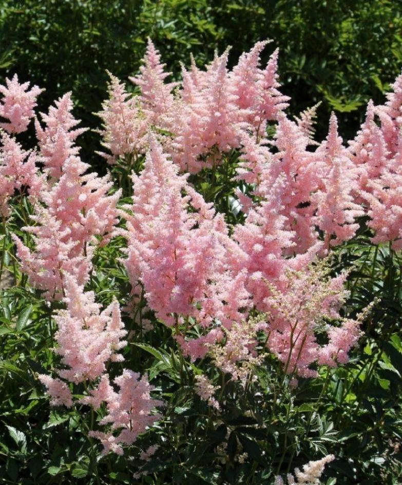 Эта астильба относится к неприхотливым растениям, не требующим сложного ухода. Обрезка ей не нужна — достаточно удалять увядшие соцветия осенью или ранней весной. Подкормки проводят дважды за сезон: весной вносят комплексные минеральные удобрения для стимуляции роста, а в начале цветения используют составы с преобладанием фосфора и калия. Зимостойкость культуры позволяет выращивать её в Московской области и большинстве регионов России без дополнительного укрытия. Она устойчива к болезням и вредителям, что делает её идеальным выбором для начинающих садоводов.