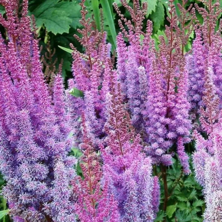 Астильба Валерия — многолетнее растение, которое ценится за изысканный внешний вид и неприхотливость. Этот сорт отличается сиреневыми соцветиями, создающими эффектные акценты в саду. Соцветия крупные, с плотной структурой, что придает им объем и выразительность. Мелкие цветки, собранные в метельчатые кисти, распускаются в июне-июле, наполняя пространство средним, но устойчивым ароматом.