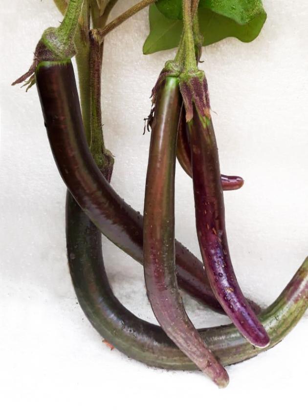 Цвет спелого плода зеленый с фиолетовым оттенком, что придаёт ему необычный и привлекательный внешний вид. Внутри мякоть имеет зеленоватый оттенок, что свидетельствует о высоком содержании полезных веществ. Отличные вкусовые качества делают этот сорт идеальным для использования в кулинарии, а отсутствие горечи позволяет наслаждаться натуральным вкусом баклажанов.
