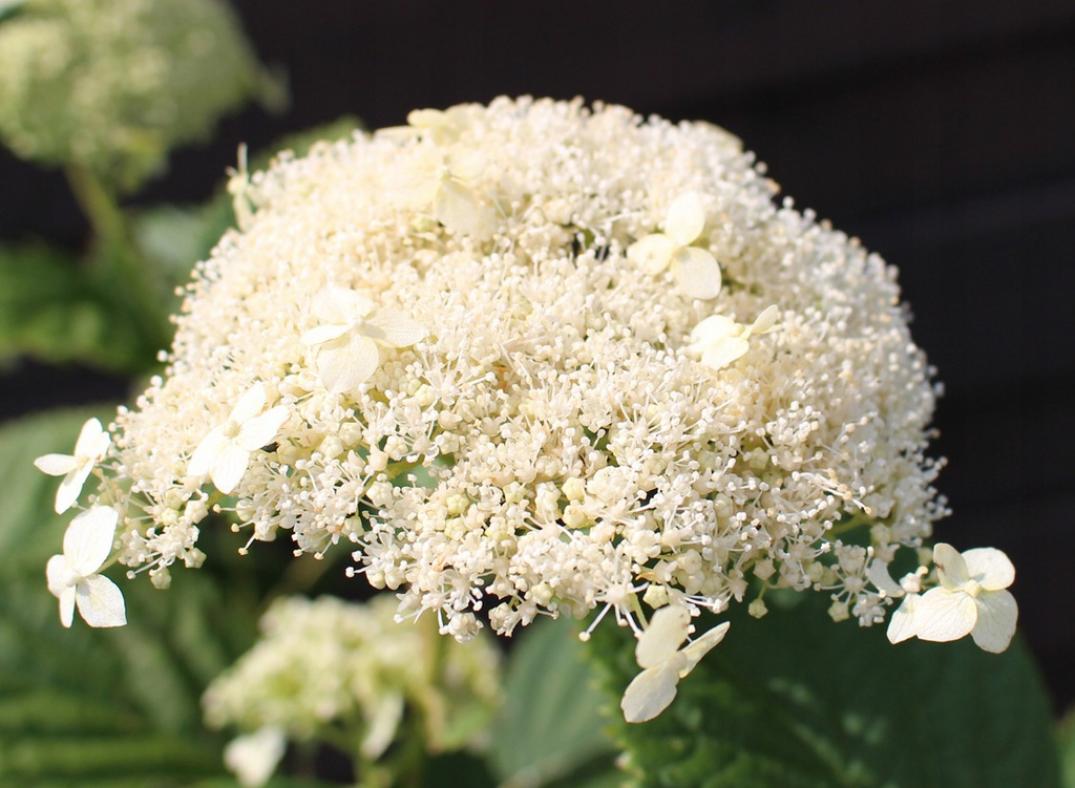 Гортензия Уайт Дом — эффектный кустарник, который станет украшением любого сада благодаря своему пышному цветению и декоративной листве. Его округлые листья с бархатистой поверхностью создают густой объём, а крупные соцветия, напоминающие белоснежные купола, придают растению воздушность. Зелёная масса к осени приобретает жёлто-зелёные оттенки, сохраняя привлекательность даже после завершения цветения.