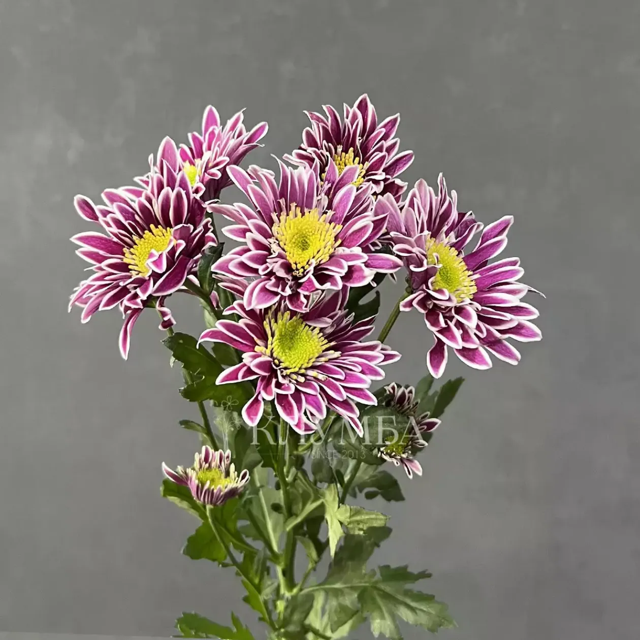 Хризантема Саба, также известная под синонимом Saba, выделяется изящным сочетанием малиновых соцветий с тонкой белой окантовкой. Это низкорослое растение, достигающее максимальной высоты 30 см, формирует компактный куст с густой зеленой листвой. Листовые пластины имеют насыщенный травянистый оттенок, который создает контраст с яркими цветами.
