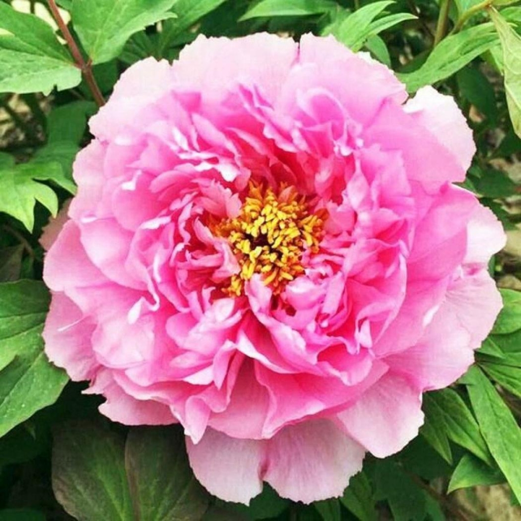 Пионы Розовый Лотос — многолетнее растение, способное стать изюминкой любого сада. Его крупные цветы, достигающие 17 см в диаметре, привлекают внимание благодаря уникальной двухцветной окраске: нежные пастельно-розовые края лепестков плавно переходят к насыщенному фиолетовому оттенку у основания. Такое сочетание создает эффект градиента, напоминающего акварельный рисунок. Цветы махровые, с кружевными лепестками жато-тонкой структуры, что придает им воздушность и сходство с хризантемами. В центре каждого бутона контрастно выделяются черные и золотистые тычинки, добавляющие композиции глубины и динамики.