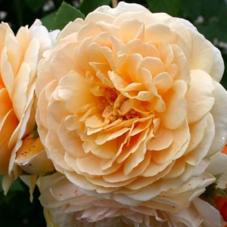 Роза Инглиш Гарден, созданная британским селекционером Дэвидом Остином в 1986 году, сочетает в себе классическую элегантность и современную устойчивость. Это растение относится к группе английских роз, которые ценятся за ностальгическую форму цветков и насыщенный аромат. Его нежно-желто-абрикосовые бутоны, украшенные красными оттенками, постепенно раскрываются в крупные цветки диаметром 10–12 см. В начале цветения они имеют широкочашевидную форму, которая со временем становится плоской, демонстрируя плавный переход от ярко-желтого центра к почти белым краям.