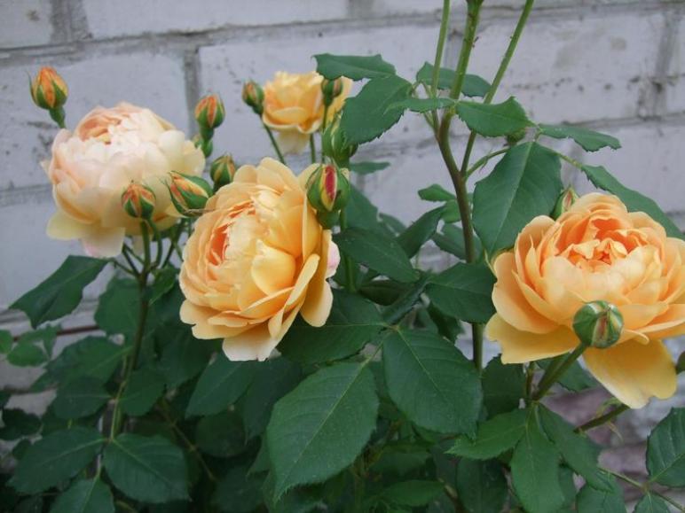 Главное украшение этого растения — чашевидные цветки среднего размера (9–12 см в диаметре) с 70 лепестками. Их окрас поражает сложной игрой оттенков: янтарно-абрикосовая основа постепенно переходит в нежно-розовые тона, а внешние лепестки окрашены в бело-кремовые цвета. Бутоны, имеющие классическую бокаловидную форму, раскрываются медленно, что продлевает декоративность. Цветы располагаются одиночно или в небольших соцветиях по 1–3 штуки на стебле, создавая эффект обильного покрытия куста.