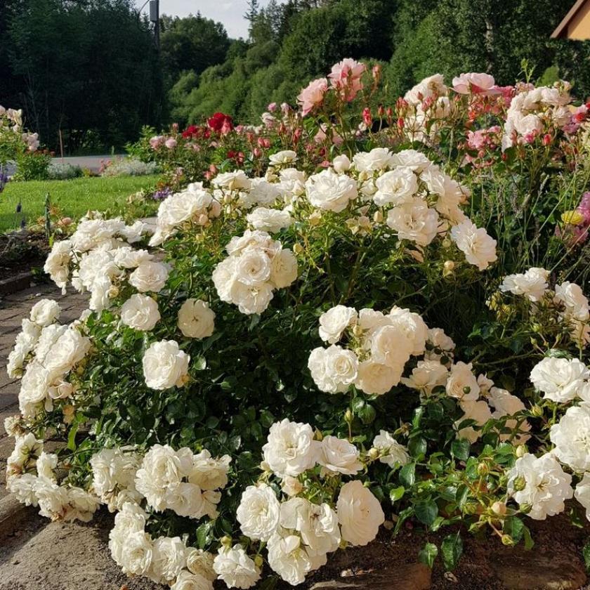 Благодаря способности разрастаться вширь, этот сорт часто применяют для создания живых ковров на склонах, альпийских горках или в качестве обрамления садовых дорожек. Невысокие кусты гармонично сочетаются с лавандой, шалфеем или декоративными злаками, подчёркивая нежность белых соцветий. Их также выращивают в контейнерах для украшения террас и балконов. Средняя устойчивость к дождю требует размещения в защищённых от сильных ветров местах, где капли не повредят лепестки.