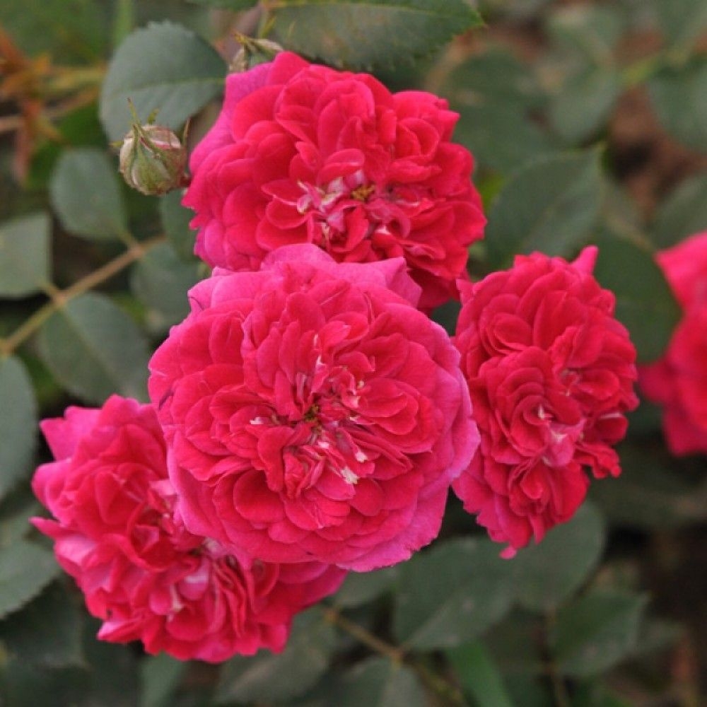 Цветение начинается в июне и продолжается до сентября, радуя продолжительной декоративностью. Цветки мелкие, диаметром 4–5 см, собраны в одиночные или групповые соцветия по 1–3 штуки на стебле. Их розетковидная форма подчеркивает насыщенный пурпурно-малиновый окрас, который сохраняет яркость даже под прямыми солнечными лучами. Отсутствие шипов на побегах делает уход за растением комфортным, а обильное цветение привлекает внимание в садовых композициях.