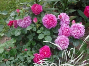 Компактный куст высотой 45–50 см и шириной 40 см формирует густую крону с крепкими побегами, лишенными шипов. Средне-зеленые листья среднего размера создают гармоничный фон для мелких цветков диаметром 4–5 см. Соцветия состоят из 2–3 бутонов, каждый из которых содержит 26–40 лепестков. Сиренево-лиловая окраска отличается яркой насыщенностью, но из-за слабой устойчивости к дождю лепестки могут повреждаться в период затяжных осадков. Цветение продолжается волнами в течение всего сезона, особенно обильное в начале лета.