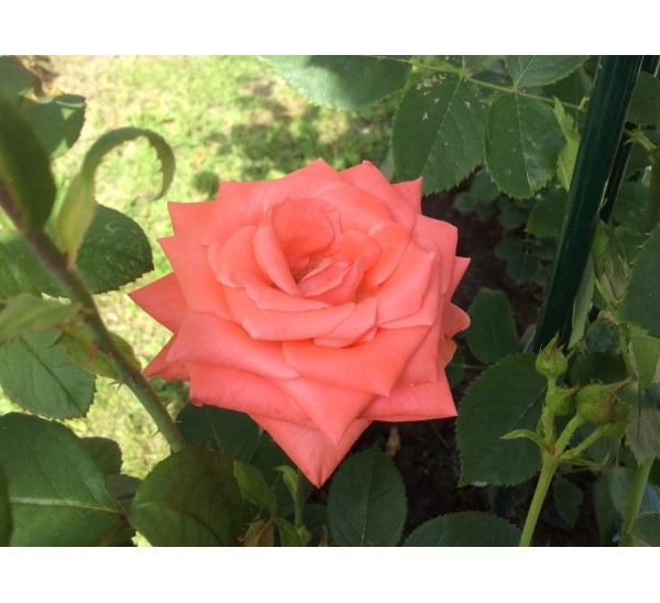 Прямостоячий куст достигает высоты 100 см при ширине 60 см, сохраняя компактную форму даже без интенсивной обрезки. Крупные листья с глянцевой поверхностью подчеркивают стройность силуэта и устойчивость к заболеваниям, включая чёрную пятнистость. Цветки располагаются одиночно на крепких стеблях, что делает растение идеальным для срезки — в вазе они сохраняют свежесть до 10–14 дней. Нежный аромат, ненавязчивый и тонкий, усиливается в утренние и вечерние часы, добавляя растению романтичности.