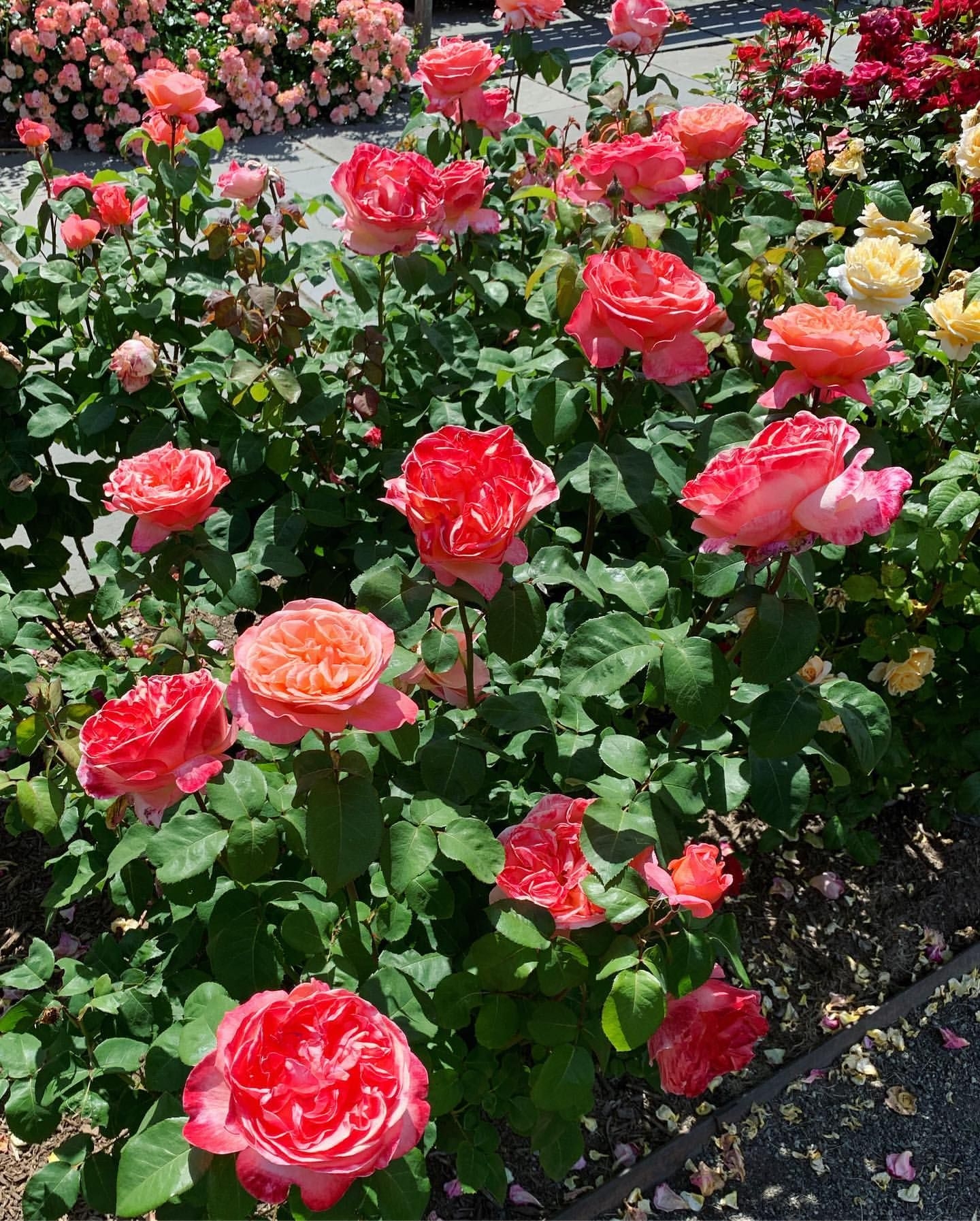 Обильное цветение продолжается с конца мая до первых заморозков, с короткими паузами для восстановления. Насыщенность окраса варьируется в зависимости от стадии раскрытия бутона: от насыщенно-розового в начале до мягкого персикового оттенка при полном роспуске. Аромат наиболее интенсивен в утренние часы и усиливается в теплую солнечную погоду. Благодаря высокой устойчивости к дождю лепестки не теряют форму даже после сильных ливней, сохраняя декоративность в течение 7–10 дней.