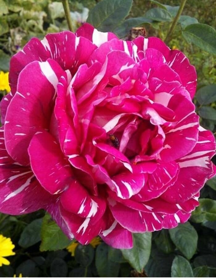 Этот сорт, созданный украинскими селекционерами К. И. Зыковым и 3. К. Клименко, привлекает внимание не только необычным окрасом, но и насыщенным ароматом с яблочными нотками. Его чашевидные цветки, достигающие 10–12 см в диаметре, отличаются малиновой основой, украшенной светлыми полосами. Каждый бутон состоит из 70 лепестков, которые постепенно раскрываются, демонстрируя сложную игру оттенков. Благодаря компактному кусту высотой 100–120 см и шириной 70–80 см, растение гармонично вписывается в ландшафтные композиции, сохраняя аккуратную форму даже без частой обрезки.