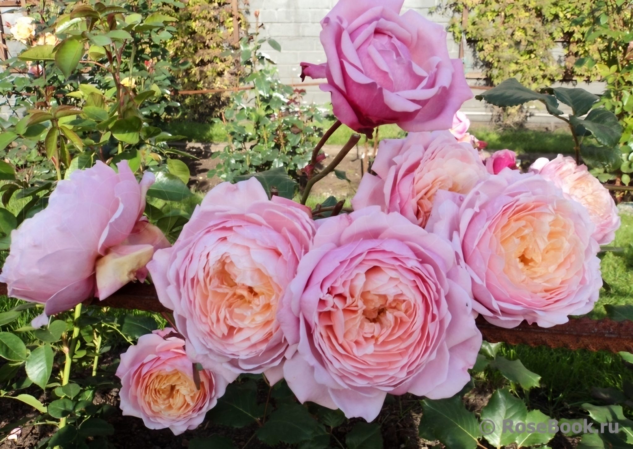 Кустарник отличается аккуратной формой с прямыми побегами, которые не требуют дополнительной опоры. Высота взрослого экземпляра достигает 100 см при ширине до 70 см, а средний ежегодный прирост составляет около 15–20 см. Тёмно-зелёные листья с глянцевой поверхностью создают контрастный фон для ярких цветов. Соцветия состоят из 5–6 чашевидных бутонов диаметром 6–8 см. Окрас лепестков варьируется от нежно-абрикосового до насыщенно-розового, образуя двухцветные переходы, которые особенно эффектны при солнечном освещении.