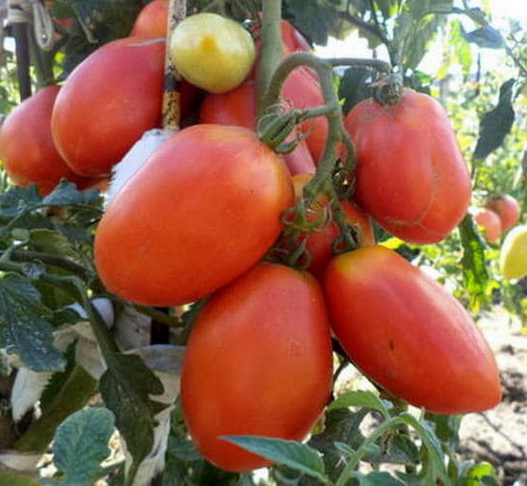 Куст этого растения достигает высоты 75–100 см, что позволяет отнести его к категории среднерослых. Форма побегов компактная, с выраженным центральным стеблем и умеренным ветвлением. Листья крупные, насыщенного тёмно-зелёного оттенка, с матовой поверхностью и слабой опушенностью. Соцветия формируются через каждые 2–3 междоузлия, цветение слабое, с преобладанием простых кистей. Плоды в незрелом состоянии имеют светло-зелёный окрас с характерным пятном у основания, которое исчезает по мере созревания. Зрелые томаты отличаются ярко-красным цветом, сердцевидной формой со слабо выраженной ребристостью. Средняя масса одного экземпляра варьируется в пределах 200–300 г.