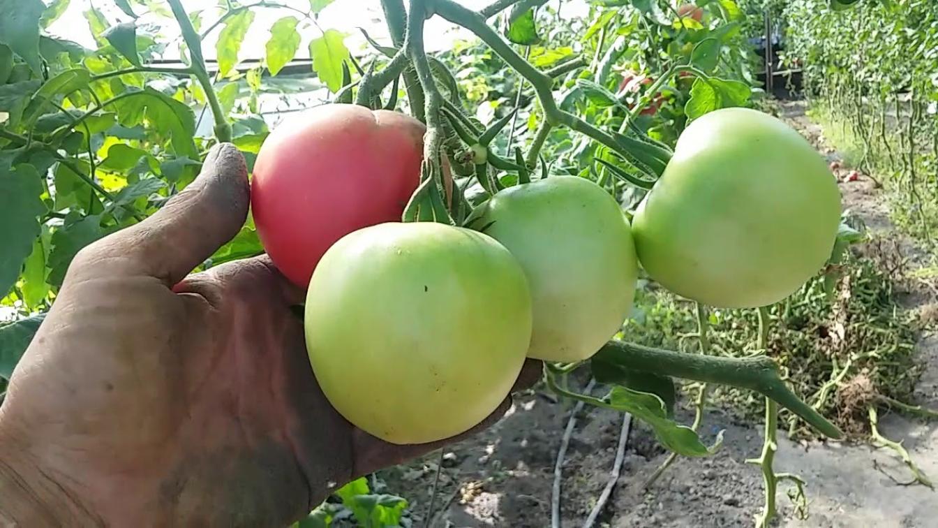 Плоскоокруглые, слаборебристые плоды созревают кистями по 6–8 штук. Их средняя масса варьируется от 200 до 300 г, а розовая окраска проявляется постепенно — от светло-зеленой в незрелом состоянии. Мякоть плотная, с минимальным количеством семян, что делает плоды идеальными для свежего потребления. Высокая транспортабельность позволяет сохранять товарный вид даже при длительной перевозке.
