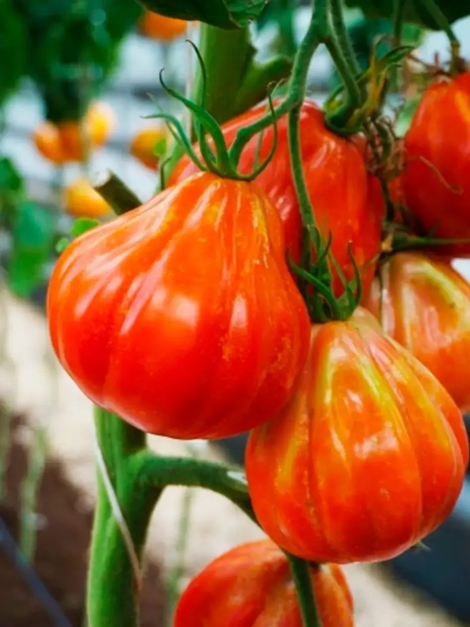 Плоды этой культуры отличаются грушевидной формой с выраженной ребристостью, что придает им декоративный вид. В зрелом состоянии они приобретают насыщенный красный оттенок, тогда как незрелые экземпляры остаются зелеными с характерным пятном у основания. Средний размер плодов компенсируется их количеством: на одной кисти формируется от 3 до 6 завязей. Мякоть средней плотности, мясистая, что делает их пригодными для универсального применения — от свежих салатов до консервации и приготовления соусов.