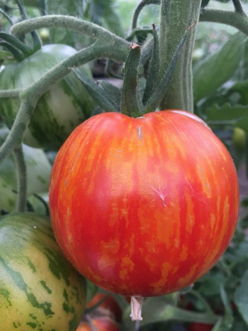 Желто-оранжевые плоды с красными штрихами служат украшением участка, а их необычная форма привлекает внимание. Несмотря на требовательность к уходу, сорт ценится за высокую урожайность и универсальность применения. Его часто используют в ландшафтном дизайне для создания акцентов в овощных грядках или теплицах.