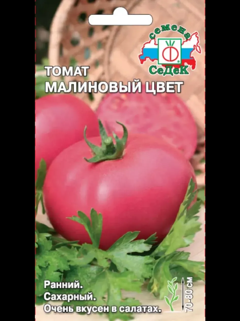 Томат Малиновый цвет — сорт, созданный селекционером Беляевым А. М., который сочетает в себе высокую урожайность и универсальность применения. Это растение относится к категории среднеранних культур, что позволяет получать урожай уже через 105–110 дней после появления всходов. Его округлые плоды отличаются малиновым оттенком кожицы и насыщенной сладкой мякотью, что делает их популярными как для свежего потребления, так и для переработки.