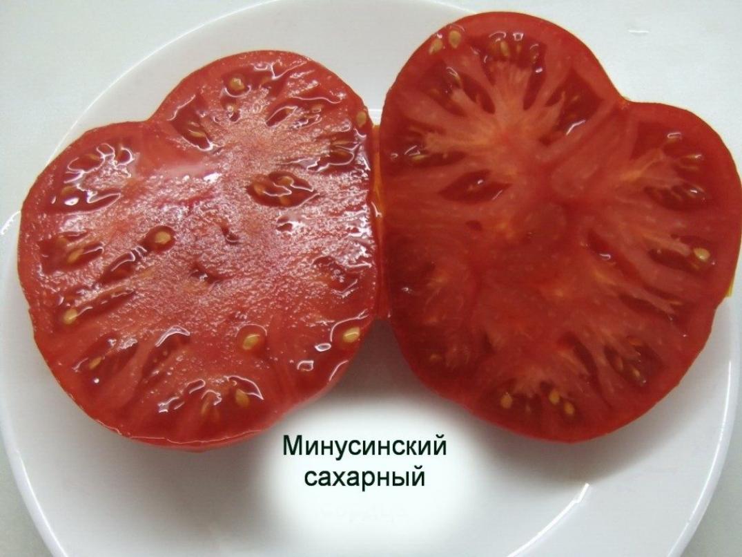 Томат Минусинский сахарный — популярный сорт, ценимый за отличные вкусовые качества и универсальность. Его плоды отличаются плоскоокруглой формой с гладкой поверхностью и насыщенным красным оттенком. Мякоть нежная, желейная, с минимальным количеством семян, что делает её идеальной для приготовления соков, кетчупов и томатной пасты. При этом плоды сохраняют плотность и подходят для употребления в свежем виде, добавляя яркость летним салатам и закускам.