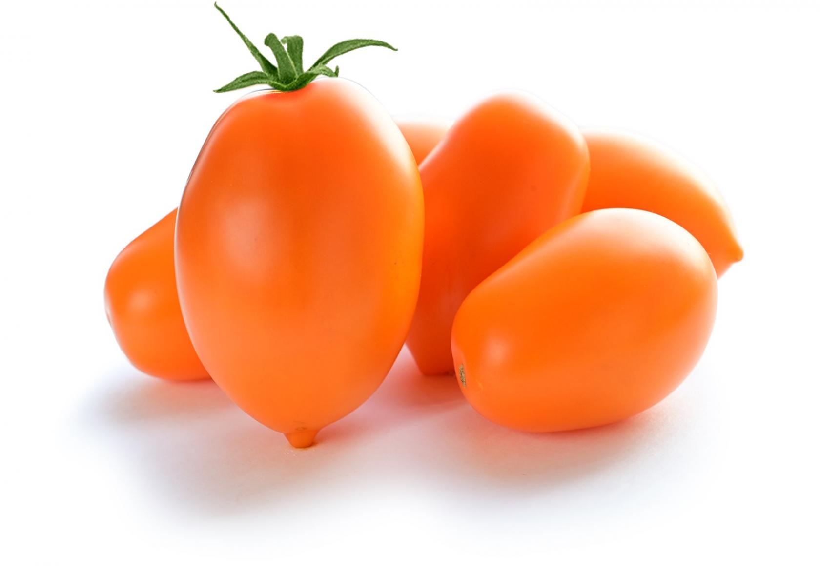 Плоды отличаются сливовидной формой с гладкой кожицей насыщенного оранжевого оттенка. На каждой кисти формируется от 6 до 8 завязей, которые равномерно созревают, создавая эффектные грозди. Мякоть обладает плотной и мясистой текстурой с высоким содержанием сока, что делает её идеальной для цельноплодного консервирования. Благодаря сбалансированному соотношению кислот и сахаров вкус оценивается как отличный — сладковатый с легкой пикантной ноткой.