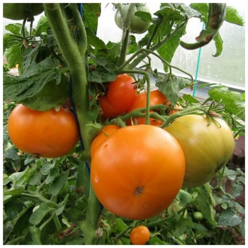 Плоды плоскоокруглой формы, с выраженными плечиками, покрыты упругой кожицей, которая предотвращает растрескивание. При полном созревании их светло-оранжевая поверхность может приобретать красноватые разводы, добавляя декоративности. Мякоть плотная, маслянистая, с умеренной сочностью и насыщенным сладким вкусом, дополненным легкой кислинкой и пряным послевкусием. В аромате угадываются нотки тропических фруктов, что делает этот томат уникальным для свежих салатов.
