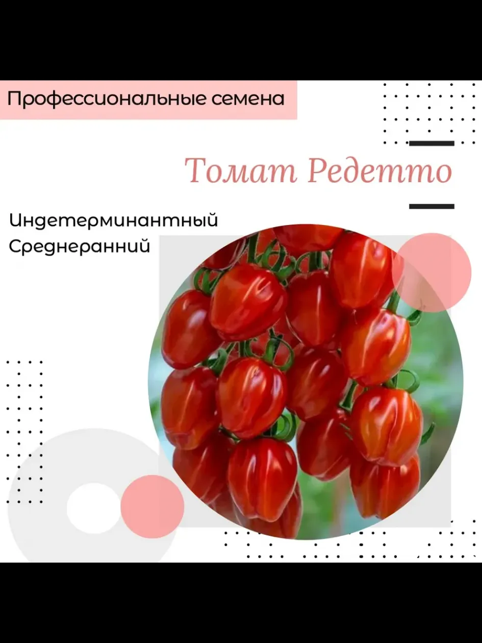 Томат Редетто — гибридный сорт, созданный селекционерами компании Rijk Zwaan и допущенный к использованию в 2020 году. Эта культура была разработана для выращивания в защищённом грунте, что делает её идеальным выбором для теплиц в регионах с нестабильным климатом. Родиной гибрида являются современные лаборатории, где упор делался на сочетание раннего созревания, высокой урожайности и устойчивости к стрессовым условиям.