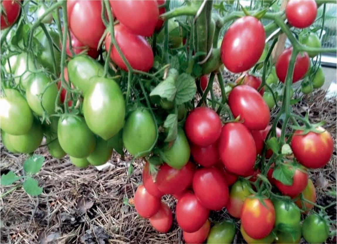 Плоды отличаются яйцевидной формой и гладкой поверхностью. В зрелом состоянии они приобретают нежный розовый оттенок, а в незрелом — светло-зеленый. Размер относится к категории «коктейльный», что подразумевает компактность и удобство для употребления в свежем виде. Вкус сладкий, без кислинки, что делает их идеальным ингредиентом для салатов и летних закусок. На одной кисти может формироваться до 50 плодов, что обеспечивает высокую урожайность — до 4,7 кг с квадратного метра.