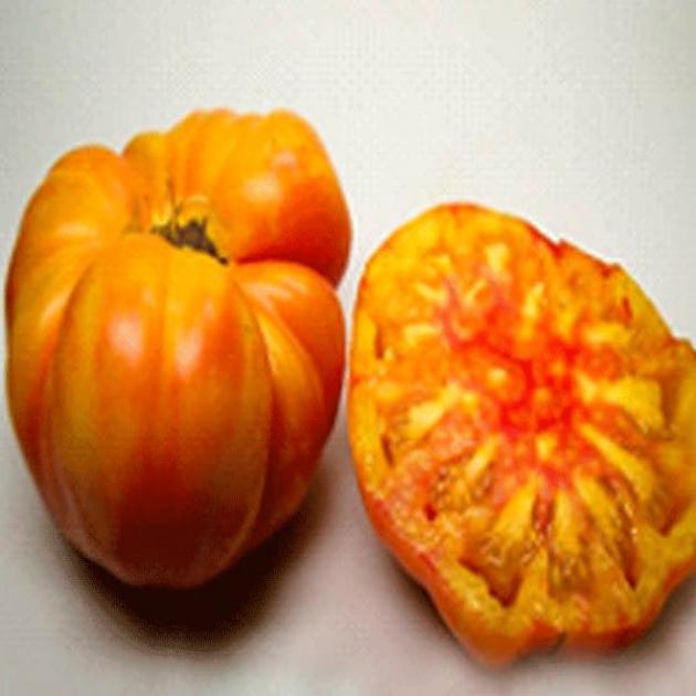 Плоды округлой формы с гладкой поверхностью привлекают внимание необычным окрасом: в зрелом состоянии они приобретают желтый оттенок с розовыми румянами, а в незрелом — равномерно зеленый. Мякоть сочная, двухцветная — желтая с розово-красной сердцевиной, что делает плоды декоративными и популярными в кулинарном оформлении. Такие растения обладают компактной формой, но требуют регулярного пасынкования для сохранения баланса между вегетативной массой и плодоношением.