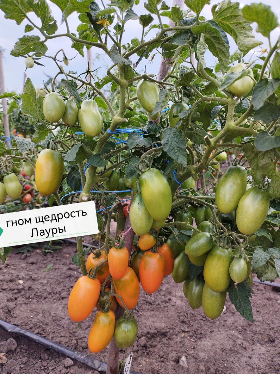 Принадлежность к серии «Гном» подчёркивает генетическую связь с карликовыми томатами, что проявляется в умеренном росте и высокой адаптивности. Синонимичные названия — «Гном Щедрость Лауры» и «Dwarf Laura’s Bounty» — отражают международное признание сорта. Исходные формы, использованные при гибридизации, обеспечили сочетание экзотического вкуса и неприхотливости, характерное для современных сортов-интродуктов.