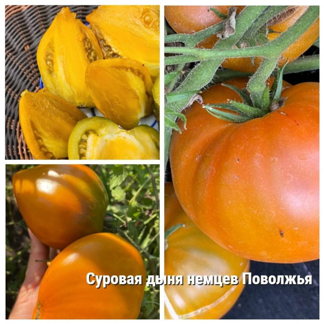 Томат Суровая дыня немцев Поволжья — среднеранний сорт, который ценится за уникальные вкусовые качества и универсальность в использовании. Это растение подходит для выращивания как в открытом грунте, так и в теплицах, демонстрируя высокую адаптивность к различным условиям. Его плоды отличаются необычным сочетанием оттенков: оранжево-бурая основа гармонично переходит в тёмно-карамельно-шоколадный цвет, создавая эффект природного градиента. Максимальная высота куста достигает 150 см в открытом грунте и 180 см в защищённых условиях, что требует своевременной установки опор для поддержки стеблей.