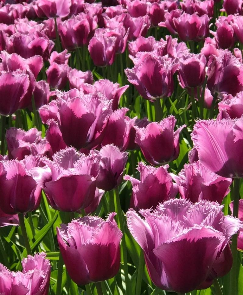 Этот тюльпан выделяется нежным, едва уловимым ароматом, который усиливается в утренние часы. Его бокаловидные бутоны, достигающие 6 см в диаметре, притягивают внимание изящной формой и контрастной окраской. Лепестки, украшенные бахромой по краям, создают эффект кружева, а их насыщенный светло-сиреневый или пурпурный тон мягко переходит в белую кайму. Центр цветка сохраняет нежный сиреневый оттенок, подчеркивая глубину окраски. Высота растения варьируется от 50 до 60 см, при этом цветок возвышается на прочном стебле, достигая 8 см в длину.